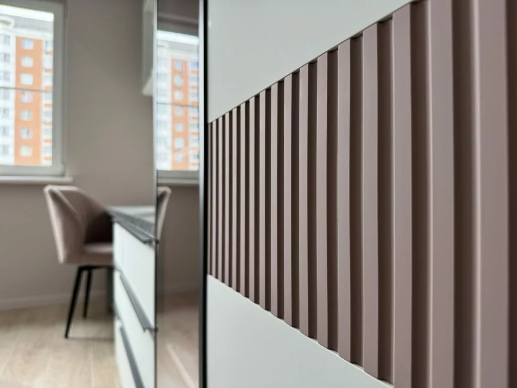 Кухня выполнена для заказчика из Некрасовки в стиле неоклассика, в трендовом цвете — кашемир